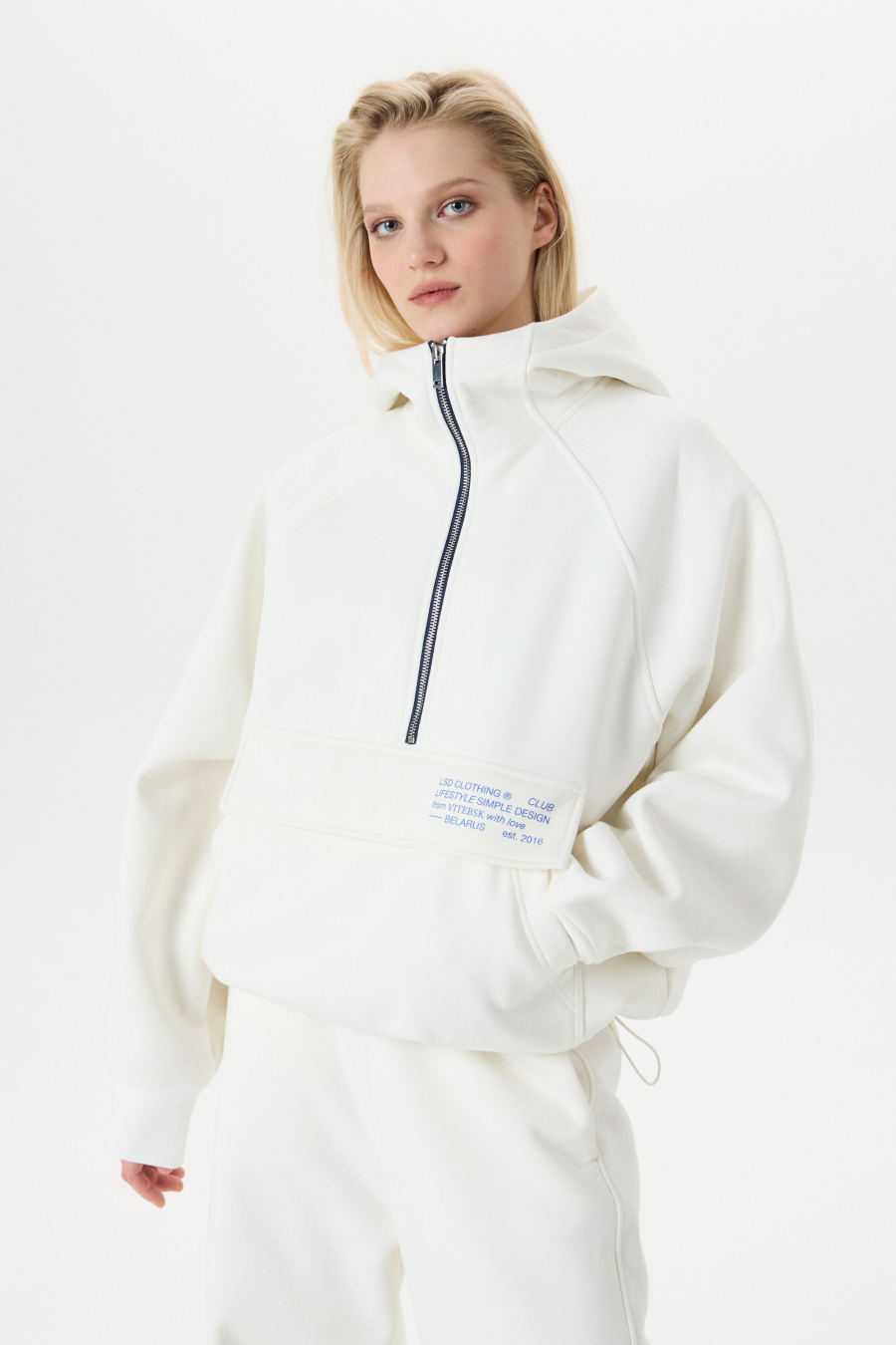 one size: длина по спинке - 64,5 см, обхват груди - 142 см, высота капюшона - 39 см, длина рукава с плечом - 79 см.
