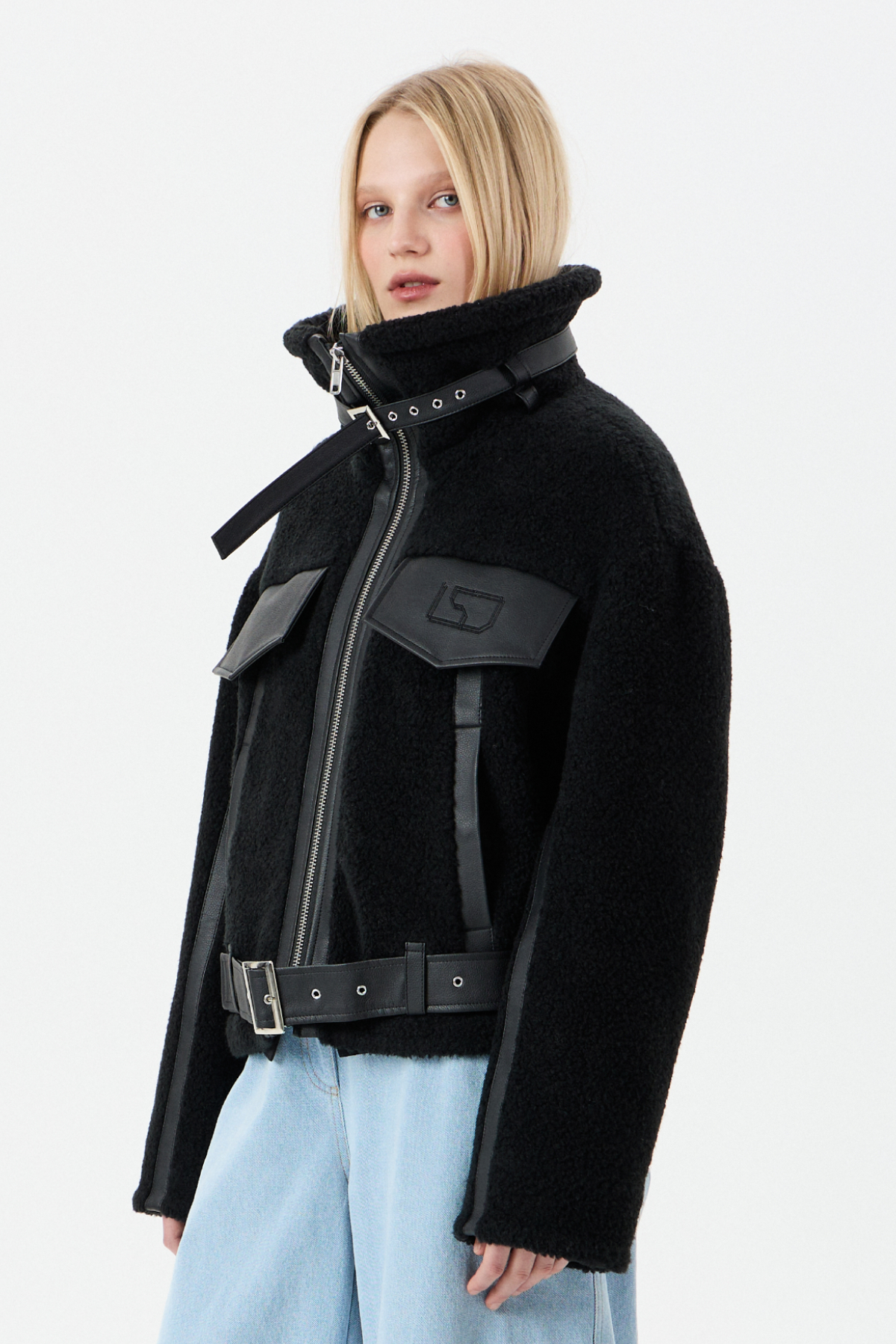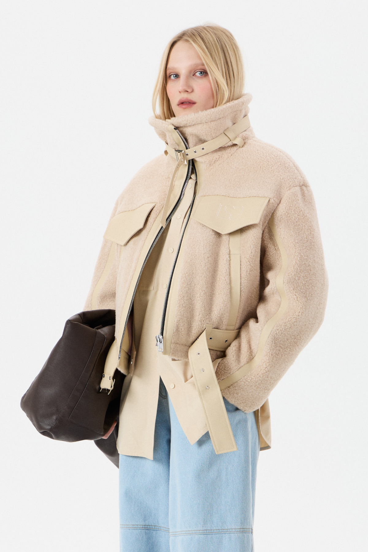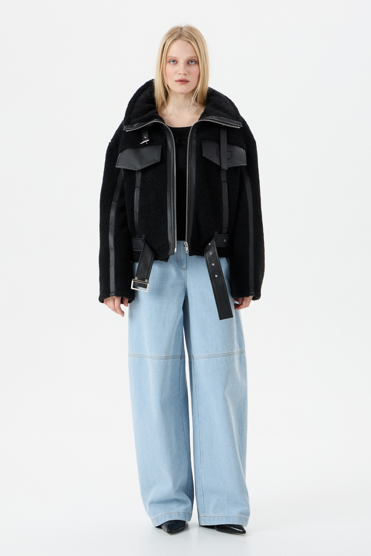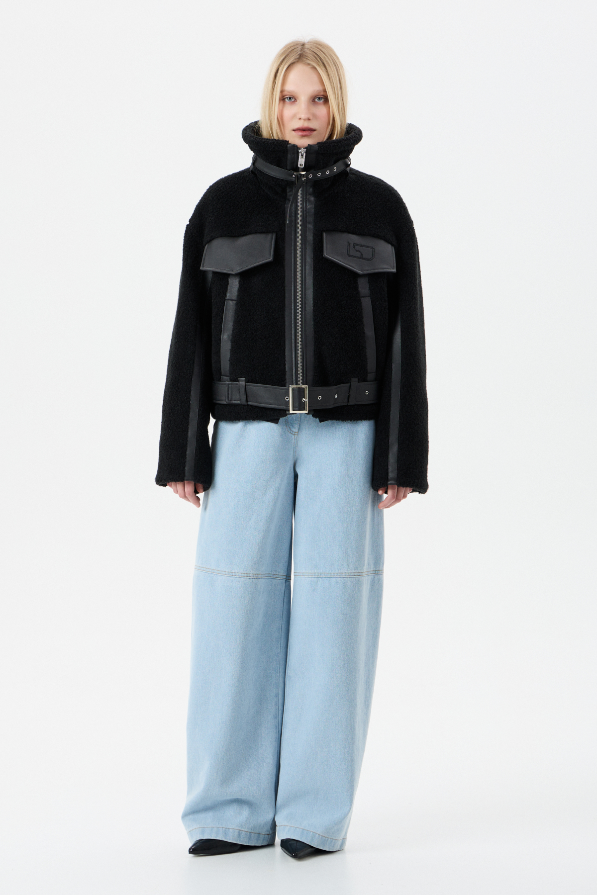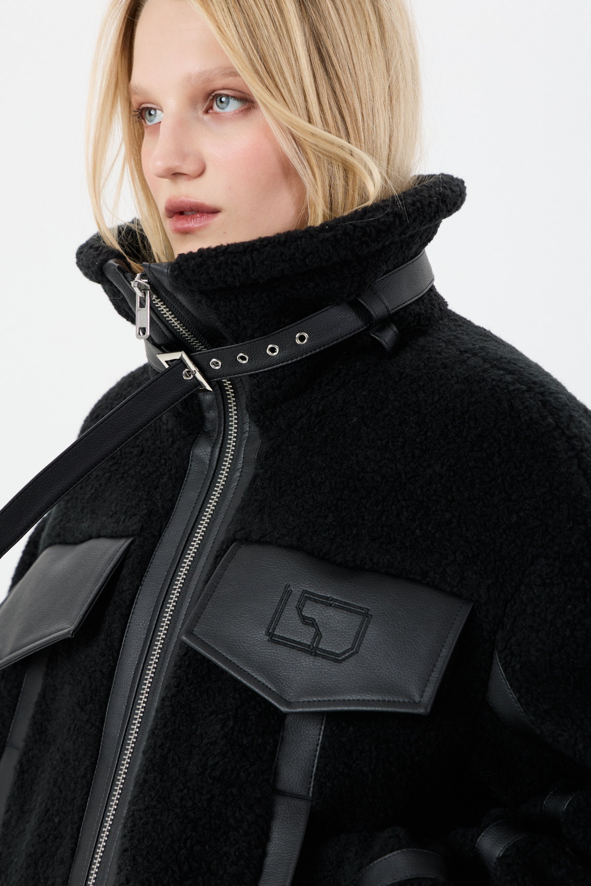 Мягкий Тедди мех с элементами из экокожи для контраста фактур. Внутри — бельгийский утеплитель Isosoft. Высокий воротник-стойка, фиксирующийся ремешком. Прямой силуэт. Два глубоких боковых кармана на заклепках. Центральная застежка на молнию. Съемный пояс по низу куртки. Продуманный дизайн: настолько, что в морозы вам не придется "обжигать" руки о ледяные молнии и детали.