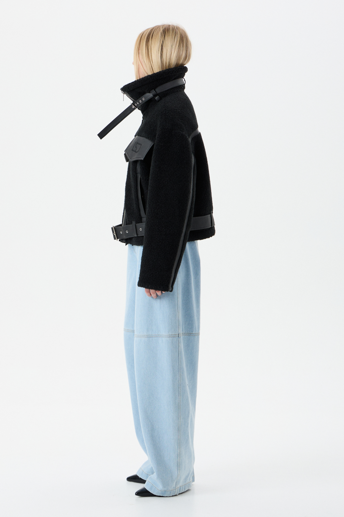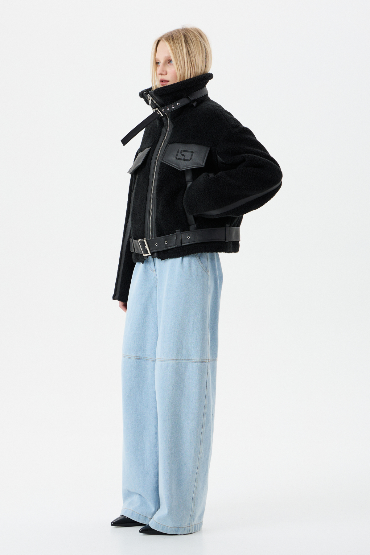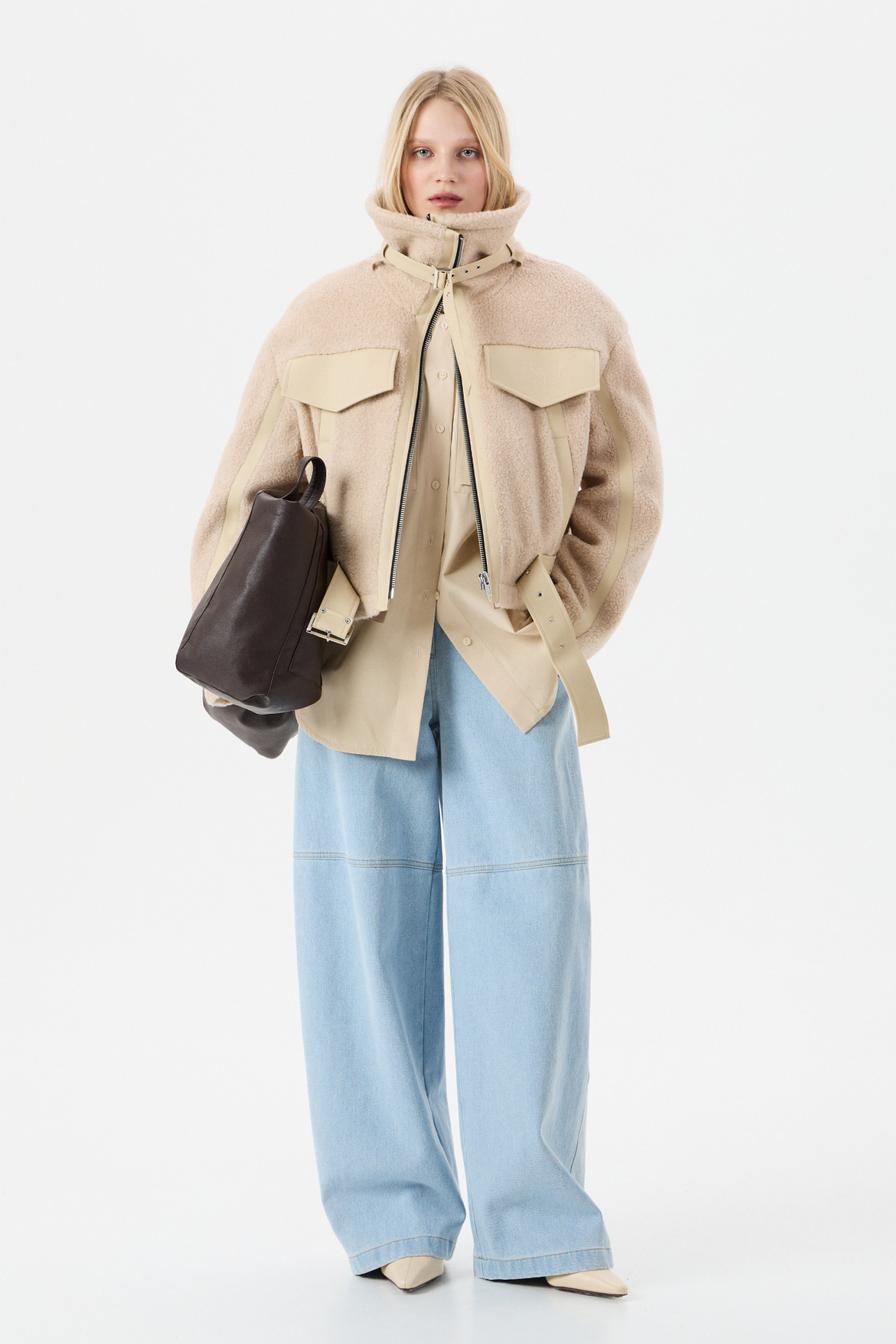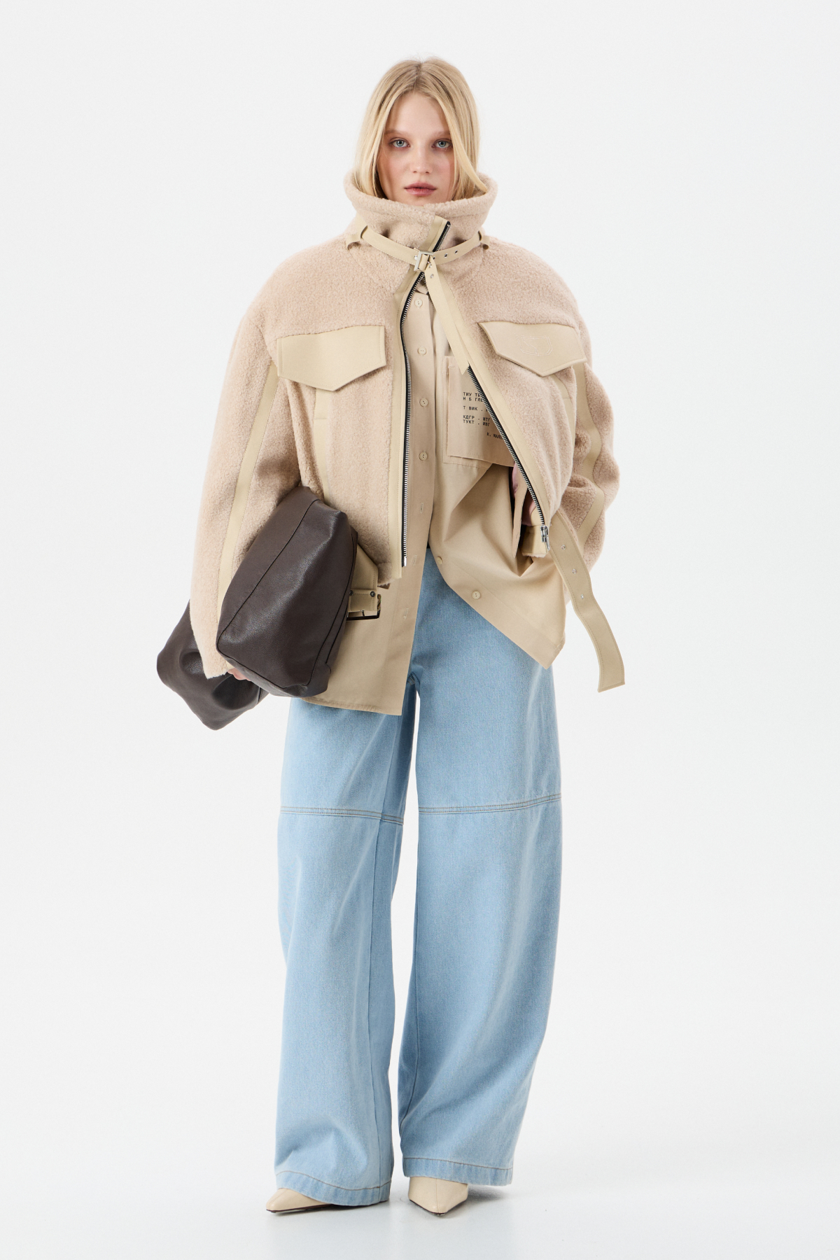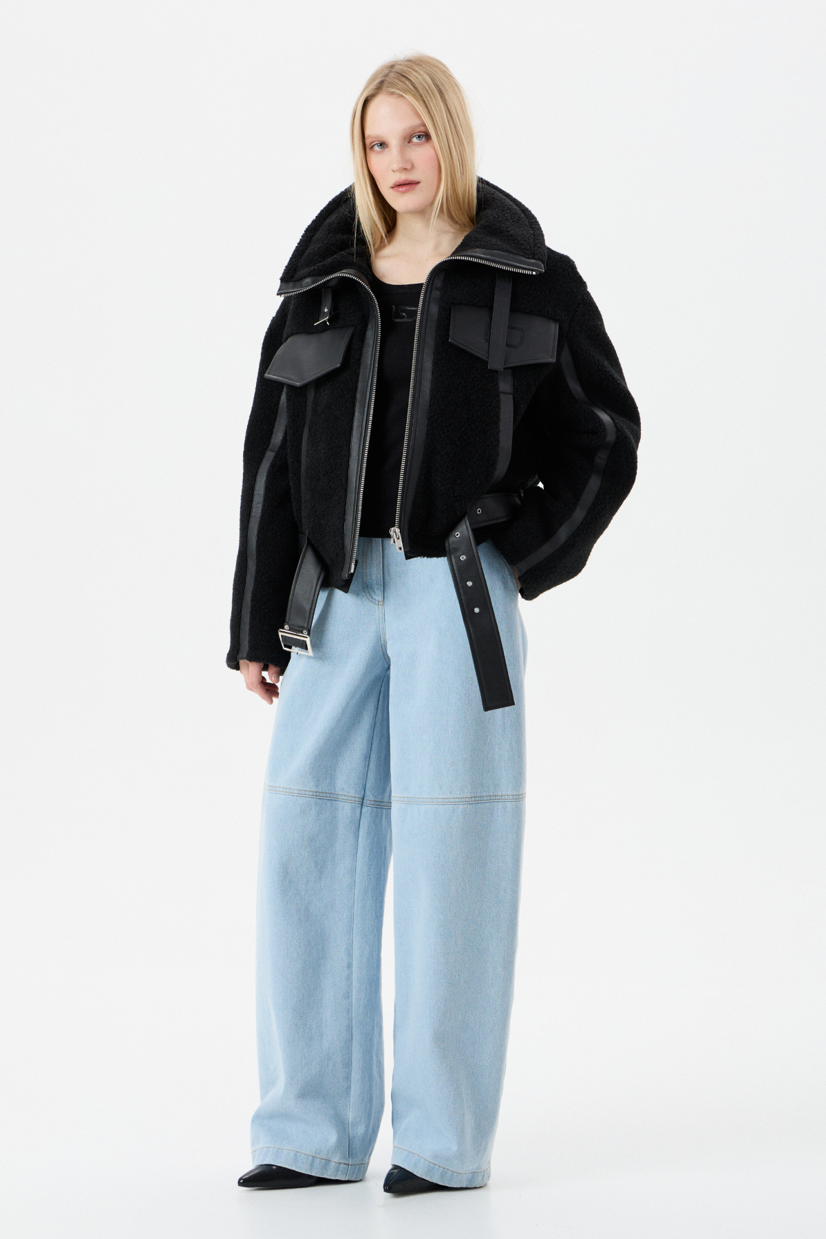 Мягкий Тедди мех с элементами из экокожи для контраста фактур. Внутри — бельгийский утеплитель Isosoft. Высокий воротник-стойка, фиксирующийся ремешком. Прямой силуэт. Два глубоких боковых кармана на заклепках. Центральная застежка на молнию. Съемный пояс по низу куртки. Продуманный дизайн: настолько, что в морозы вам не придется "обжигать" руки о ледяные молнии и детали.