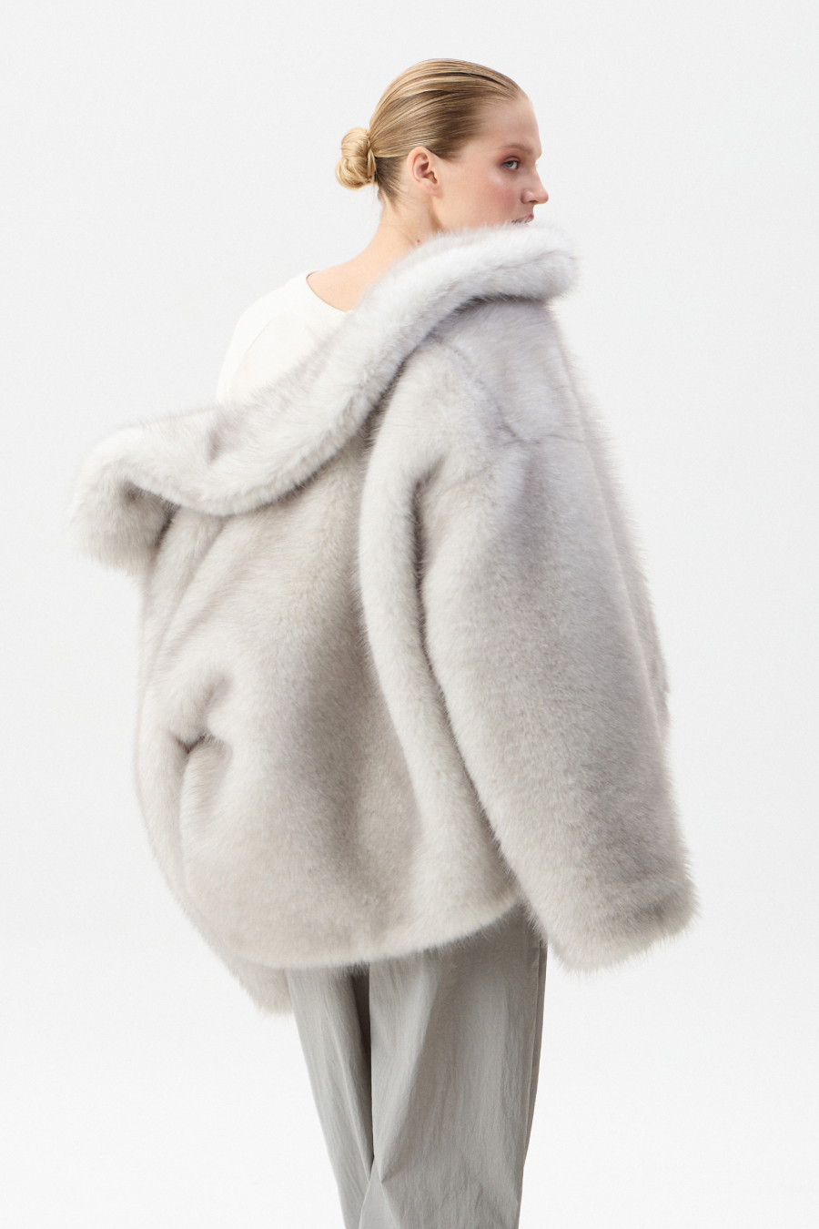 Шуба из длинноворсового экомеха с бельгийским утеплителем Isosoft – это то, что добавит любому луку нарядного шика и при этом будет оставаться в допустимых рамках кэжуальности. За это благодарим укороченную длину и расслабленный силуэт.