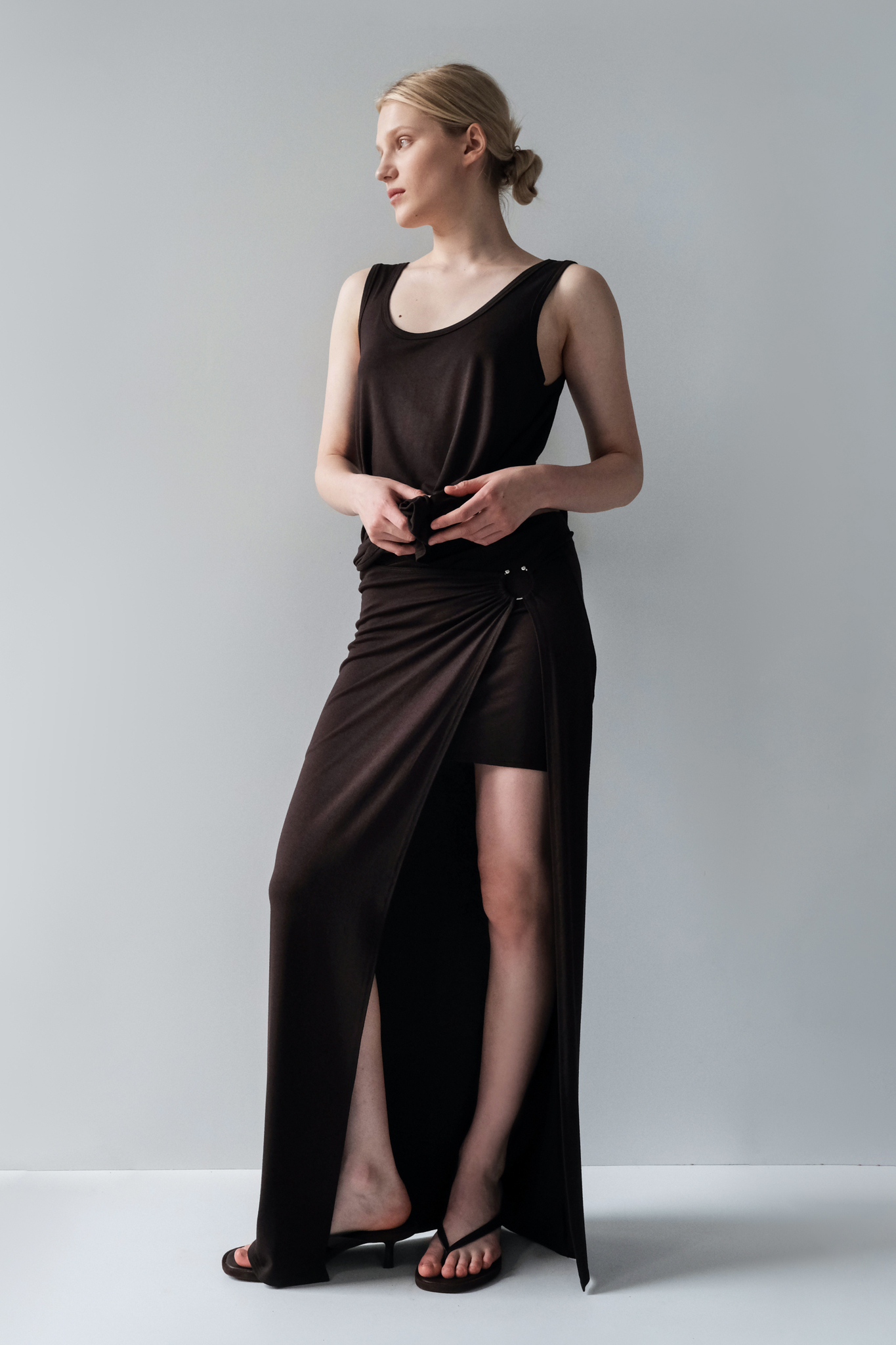 Параметры изделия: 40: длина изделия сзади — 99 см, обхват талии стянутый резинкой — 25 см, обхват бёдер — 88 см. 44: длина изделия сзади — 99 см, обхват талии стянутый резинкой — 33 см, обхват бёдер — 96 см.
