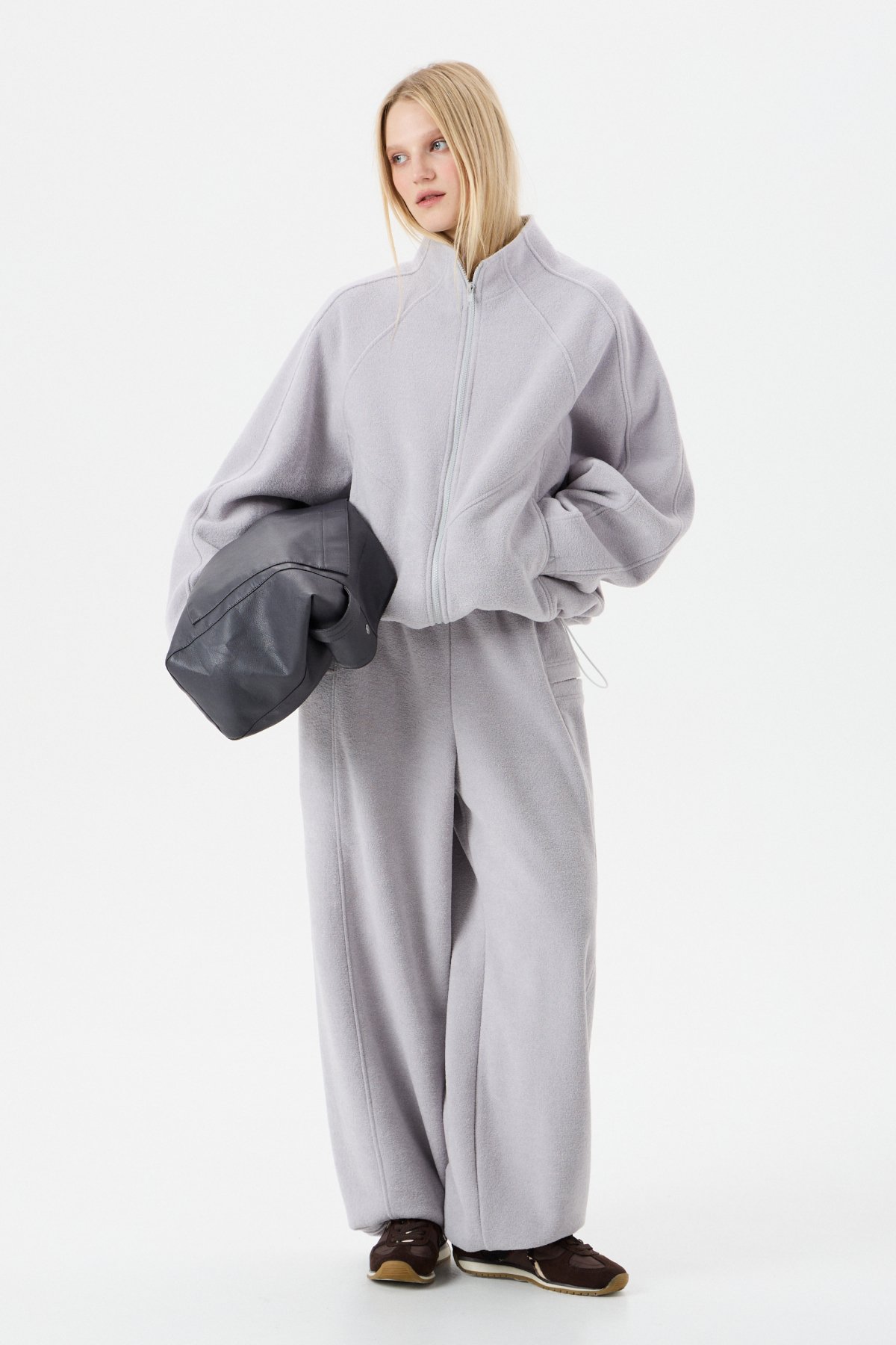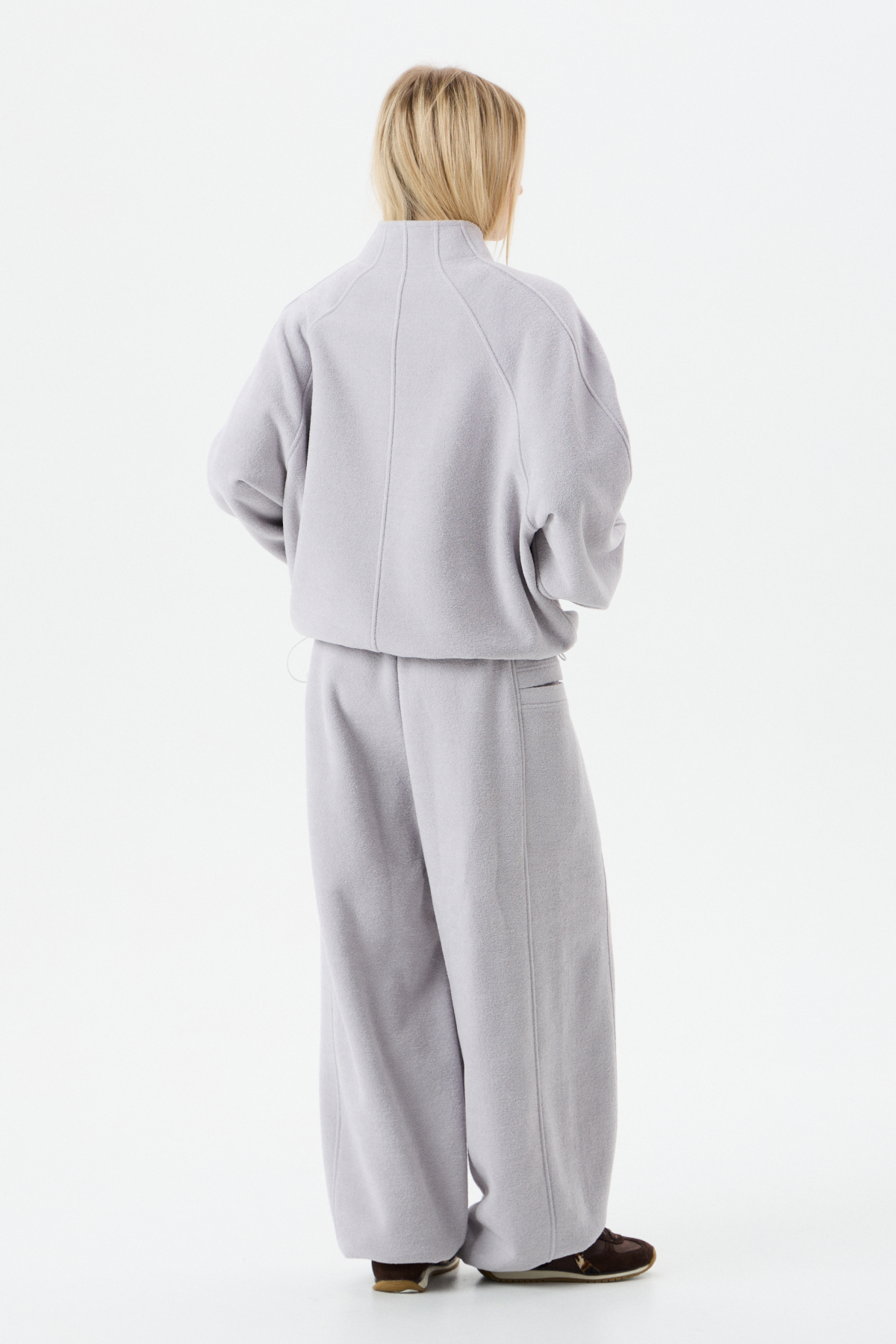 Зип-свитшот Slow дополняют брюки Sunday. Вместе айтемы работают как уютный one-mile wear сет: для дома, прогулки, путешествий.