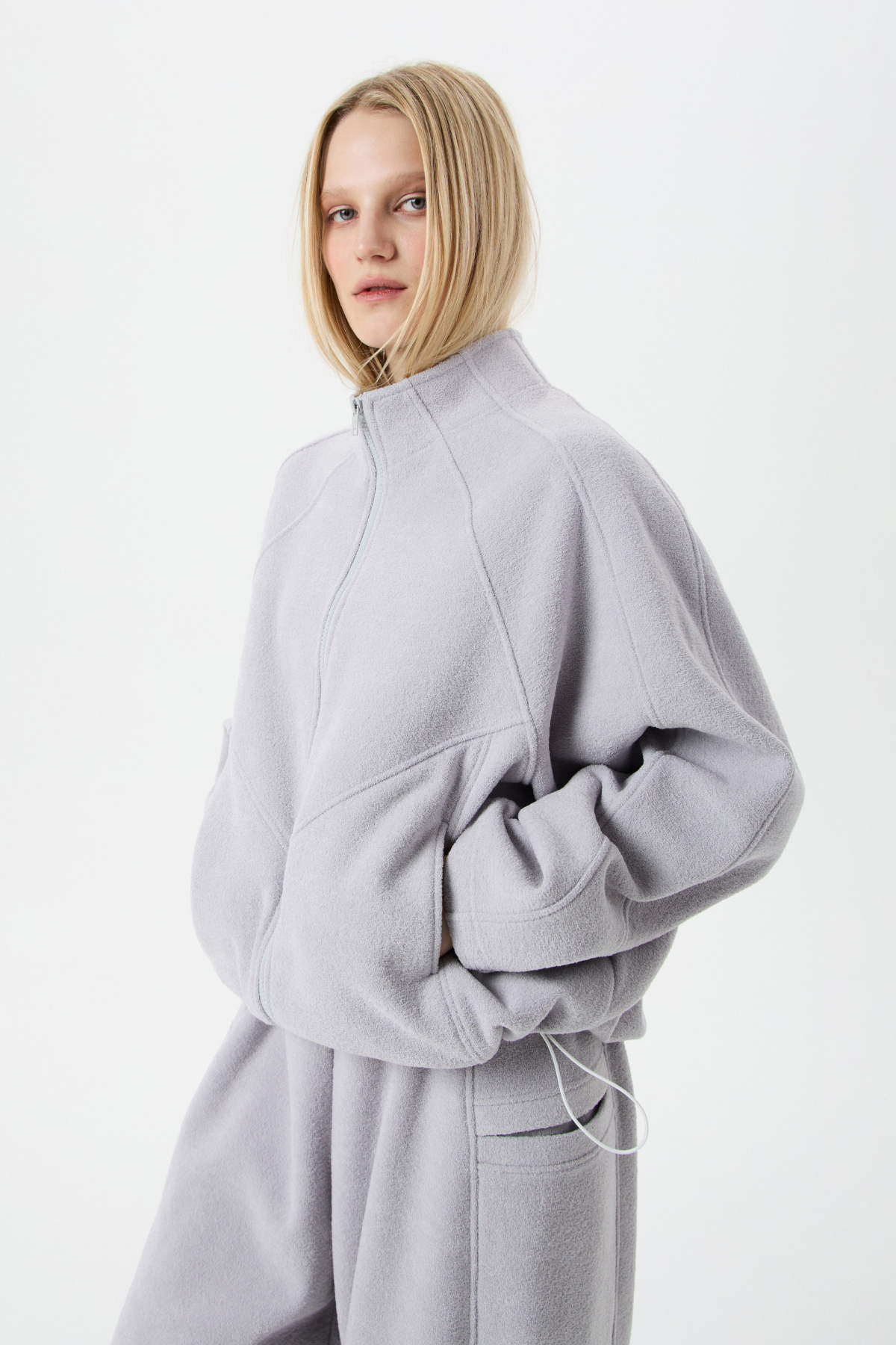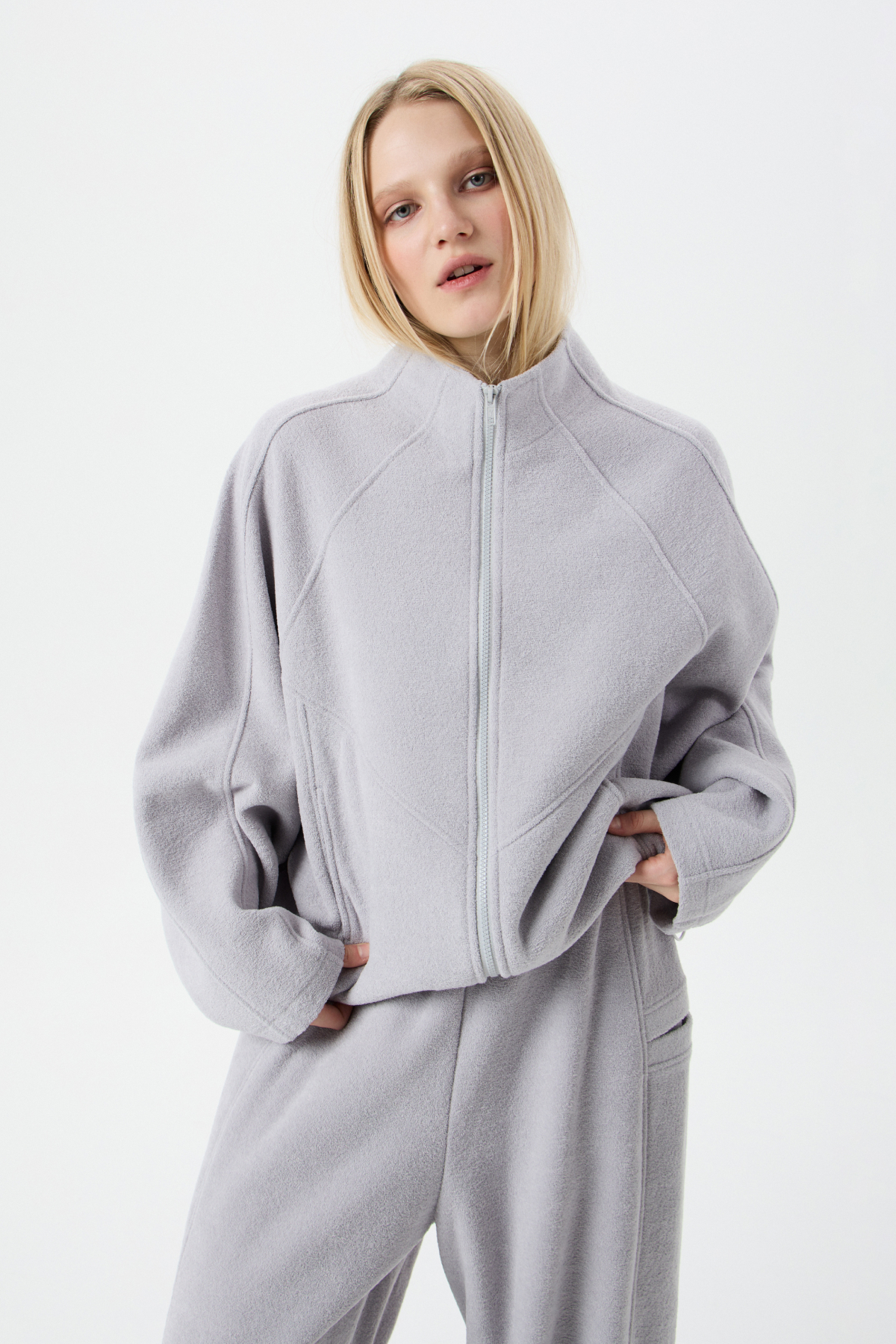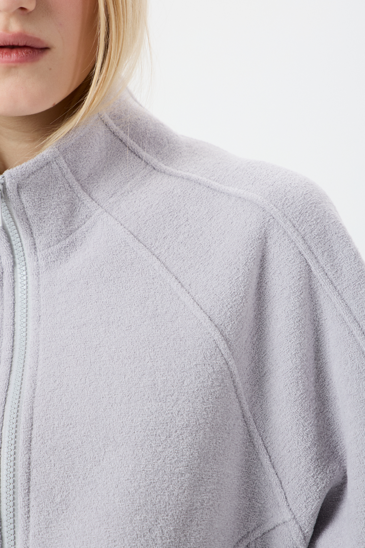 Зип-свитшот из мягкого вискозного полотна с махровым эффектом. Модель выполнена в универсальном размере one size и застёгивается на молнию.